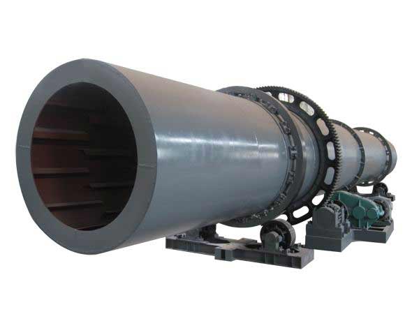 1)筒体:(本机主体)用12~20mm钢板制成,分为前段—预热段,筒内壁装有螺旋叶片。主要用以防止刚进入机内的湿料发粘堵料。螺旋板起到推送料和翻料打散物料,使水份易散发排出作用;中段—烘干段,筒体内壁装有多块扬料炒板,它不但起到翻炒物料,使物料受热烘烤均匀,且扬起物料使水分易于散发脱离物体。而且还与筒体一起旋转至上半部被上层热气流加热,转到底部时再将热传导加热物料。周而复始,起热传导作用,是本产品烘烤物料快干、节能、减少热耗的特点;后段—冷却段,筒体内光壁没了扬料板的热传导和翻炒,物料静静慢慢地在底部冷却后从出料口流出。